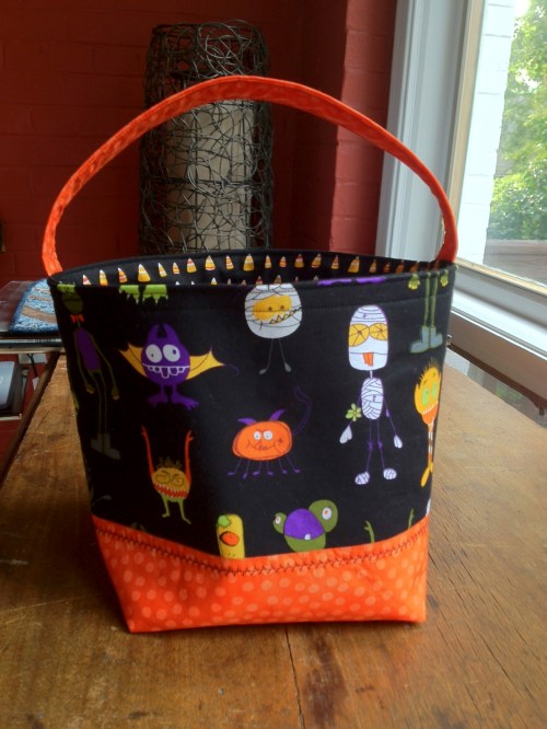 Isn’t this adorable? I couldn’t resist the little monsters on this fabric.  I’m trying to make a few items to sell in the “boutique” at my quilt guild’s show in mid-October. It will help the Needlechasers of Chevy Chase support their community service and educational programming for the next two years.