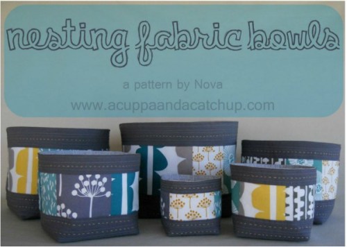 The pattern that I used is “Nesting Fabric Bowls” by Nova Flitter of “a cuppa and a catch up“. It is a downloadable PDF pattern that costs $7.95, is worth every cent, and you can find it here.