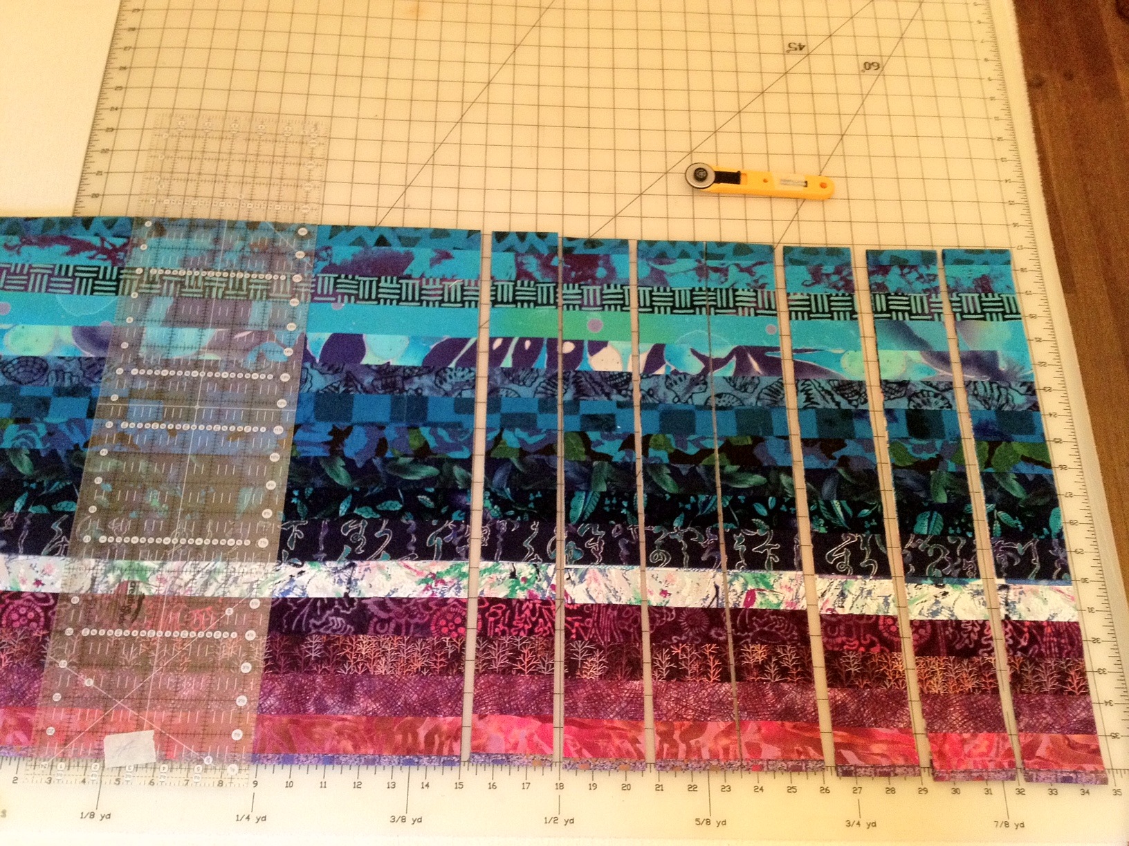These strips of fabric were perfectly sewn together with really flat seams that were so easy to work with. I sewed enough of them together to form one long piece.