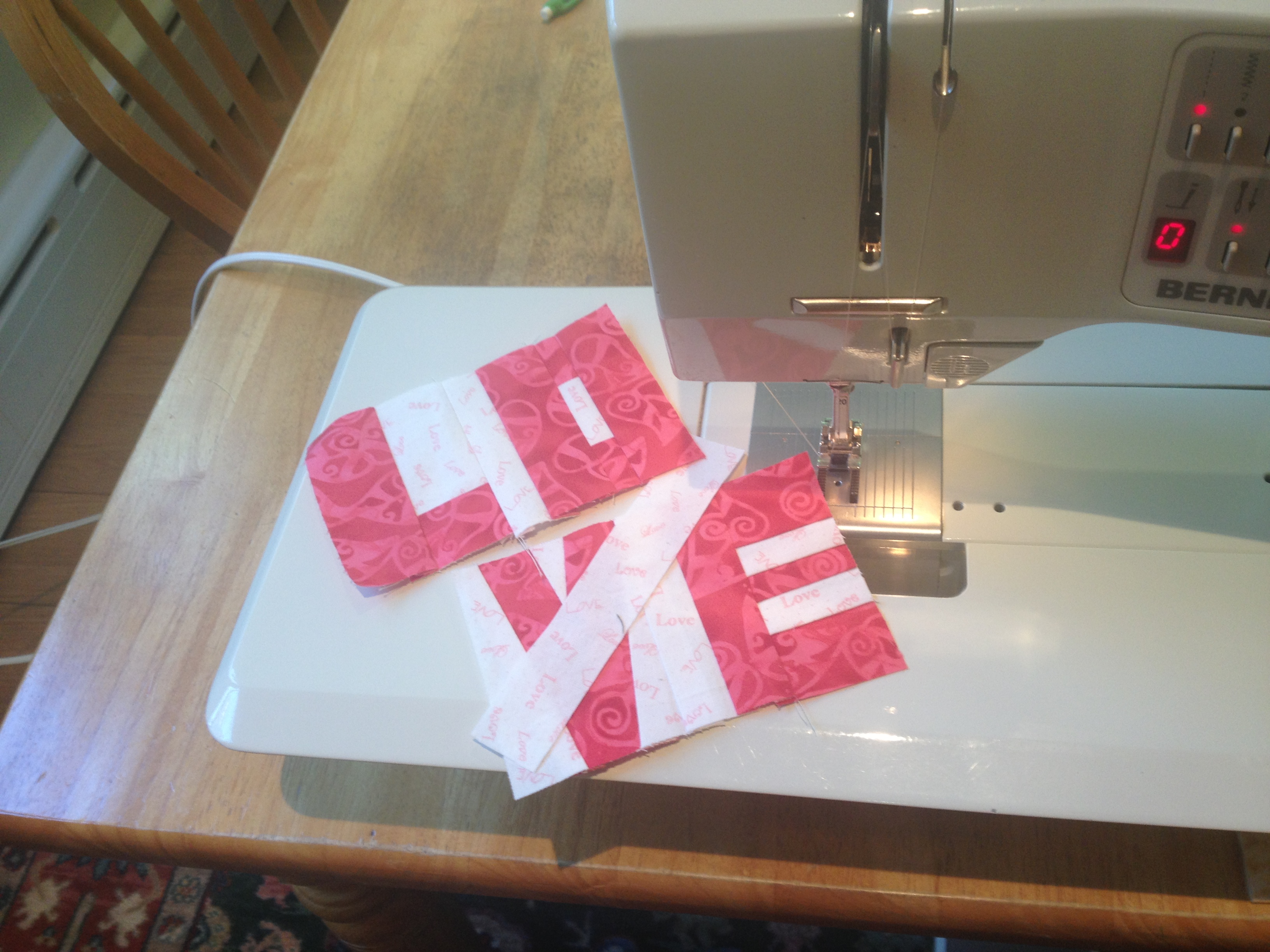 Click here or on the button at the top or side of this page to find out all the details if you want to make a flag. There is a certain color palette and the deadline for the flags to be in Boston is May 21st so there is still time. If you want to see more pictures of the flags that have already been made, click here to go to the Flickr group. I had a little sew “date” yesterday with my friend to help us get started.