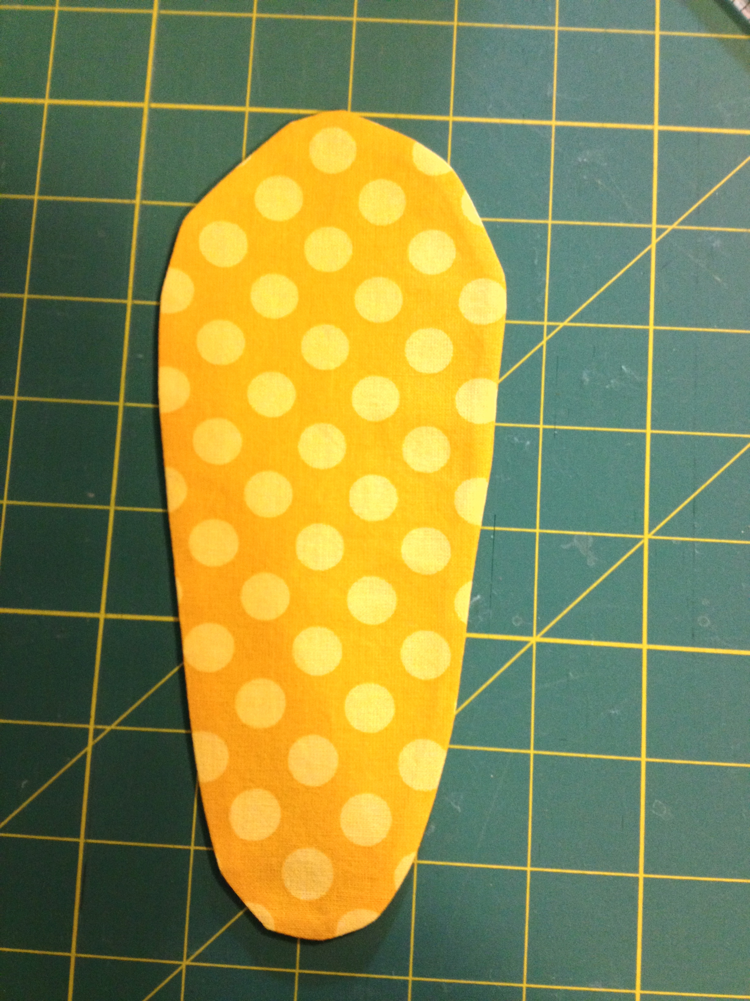 First step was to sew that middle pepper piece (I used polka dot fabric for this). I had already read through quite a few blog posts from those who had made their peppers and linked them to LR Stitched. Amy from Amy made that! . . . by eamylove said she used freezer paper to make her templates. She ironed them on the fabric and sewed around them and this allowed her to use the same pattern for each of the pepper coasters she made instead of tracing the shape on each fabric. This sounded like genius to me, even though I was only making one today. I just pinned the pattern piece on my fabric and carefully sewed around it.