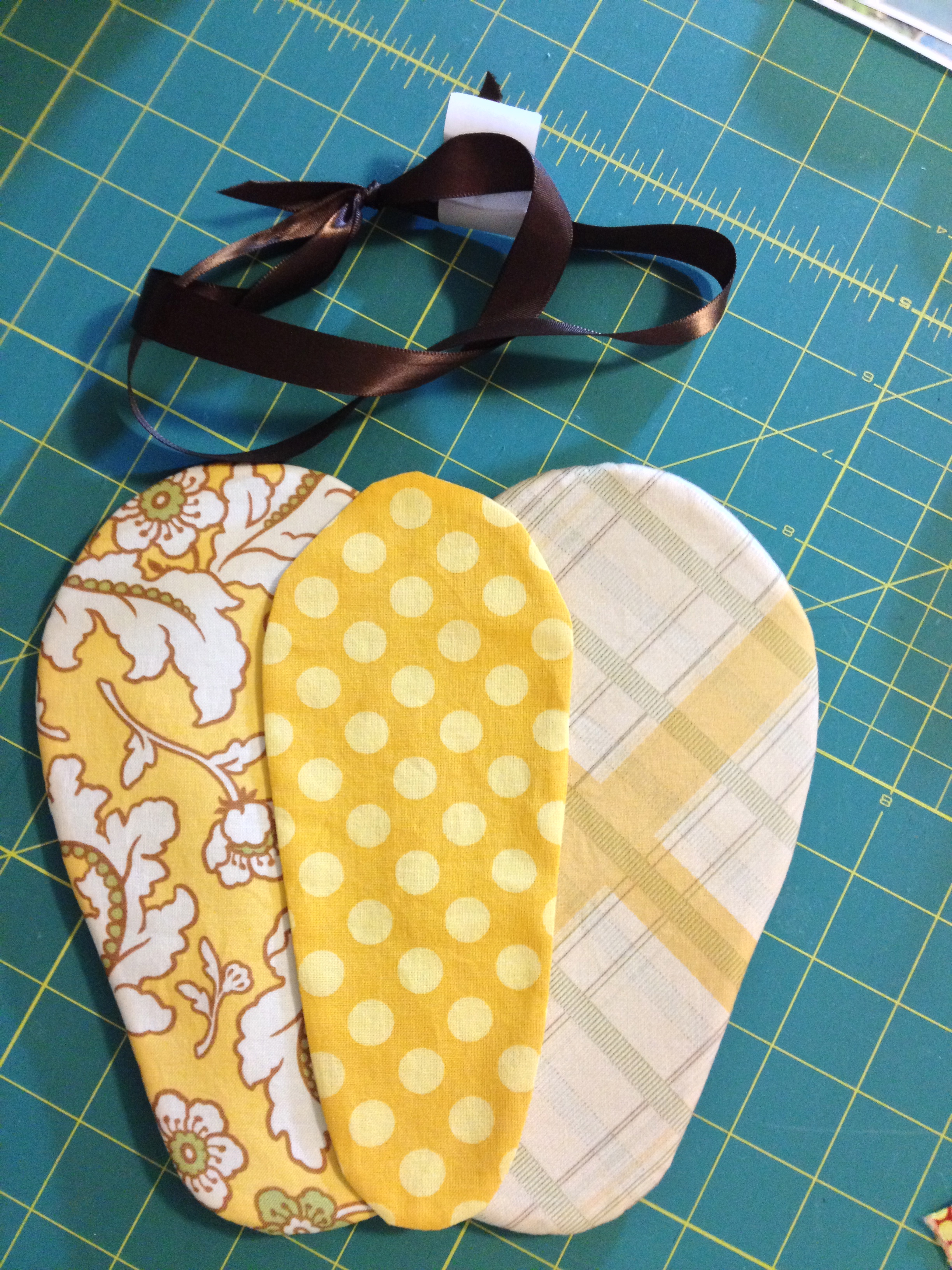 These fabrics came wrapped together in that pretty brown ribbon that was perfect to use for the pepper stem!