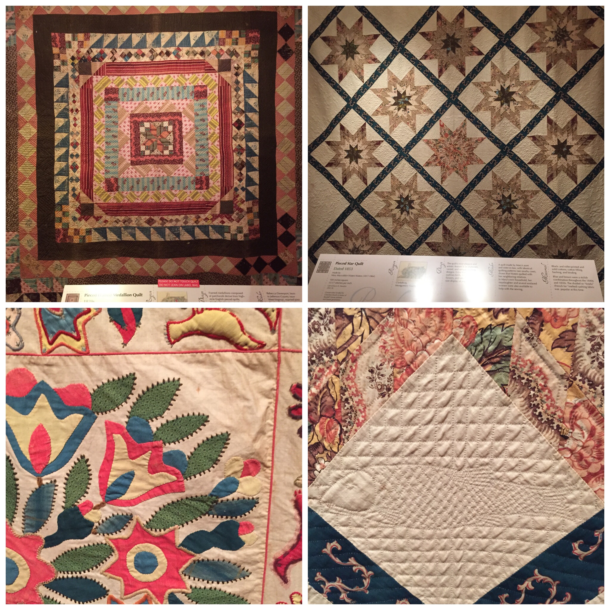 On Wednesday afternoon a few of us took Victoria to the Daughters of the American Revolution (DAR) Museum in DC which currently has a special exhibit of antique quilts from Virginia and Maryland. The Needlechasers guild is booked to take a tour of this exhibit together this summer and I wanted to preview it. It was wonderful to see these old quilts.