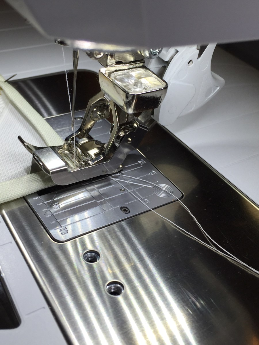 Presser foot slanted up in the front causes feed dogs to not be able to advance the fabric.