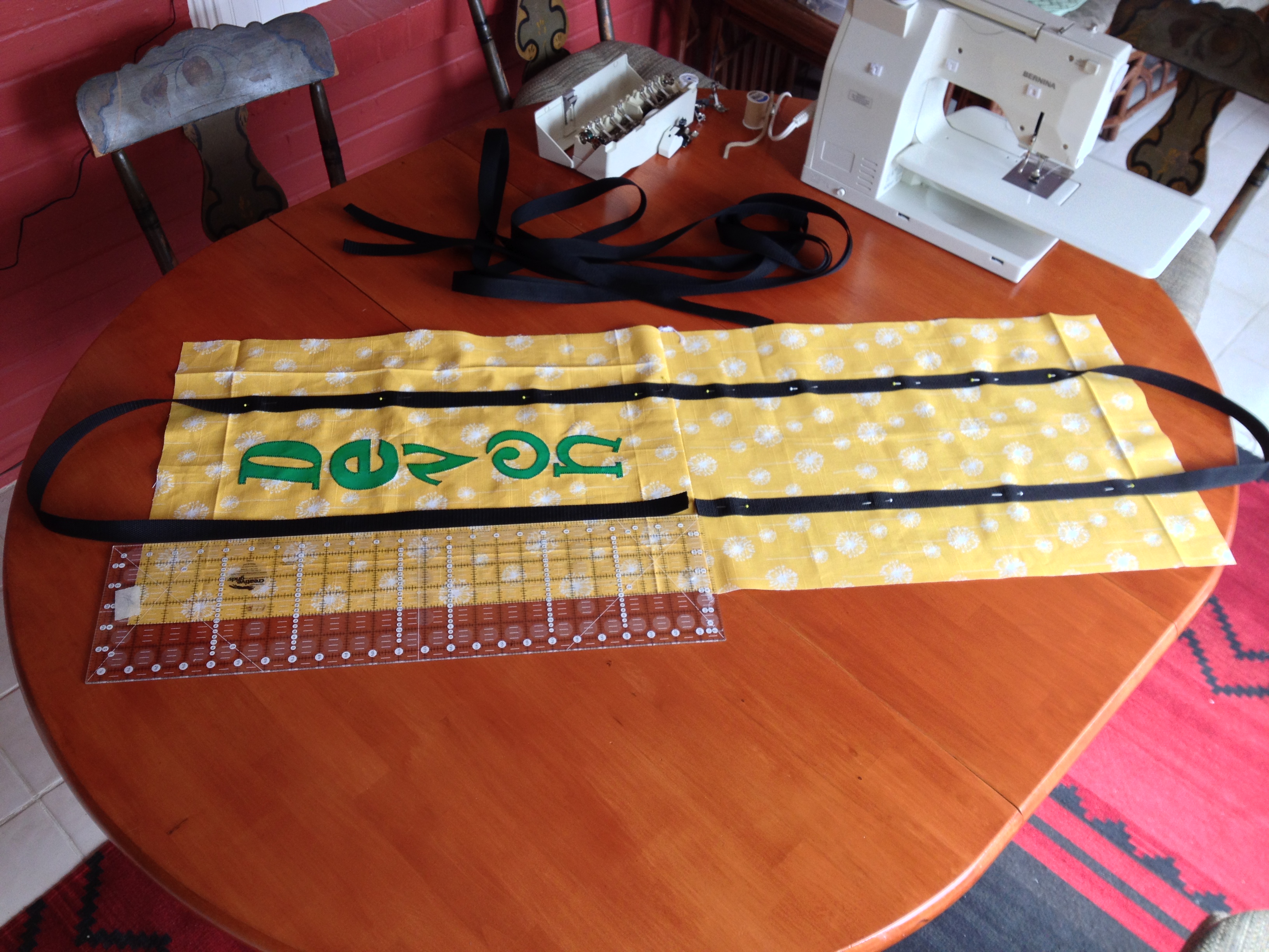 Sewing the webbing on is a breeze if you use an edge stitching foot and move your needle position!
