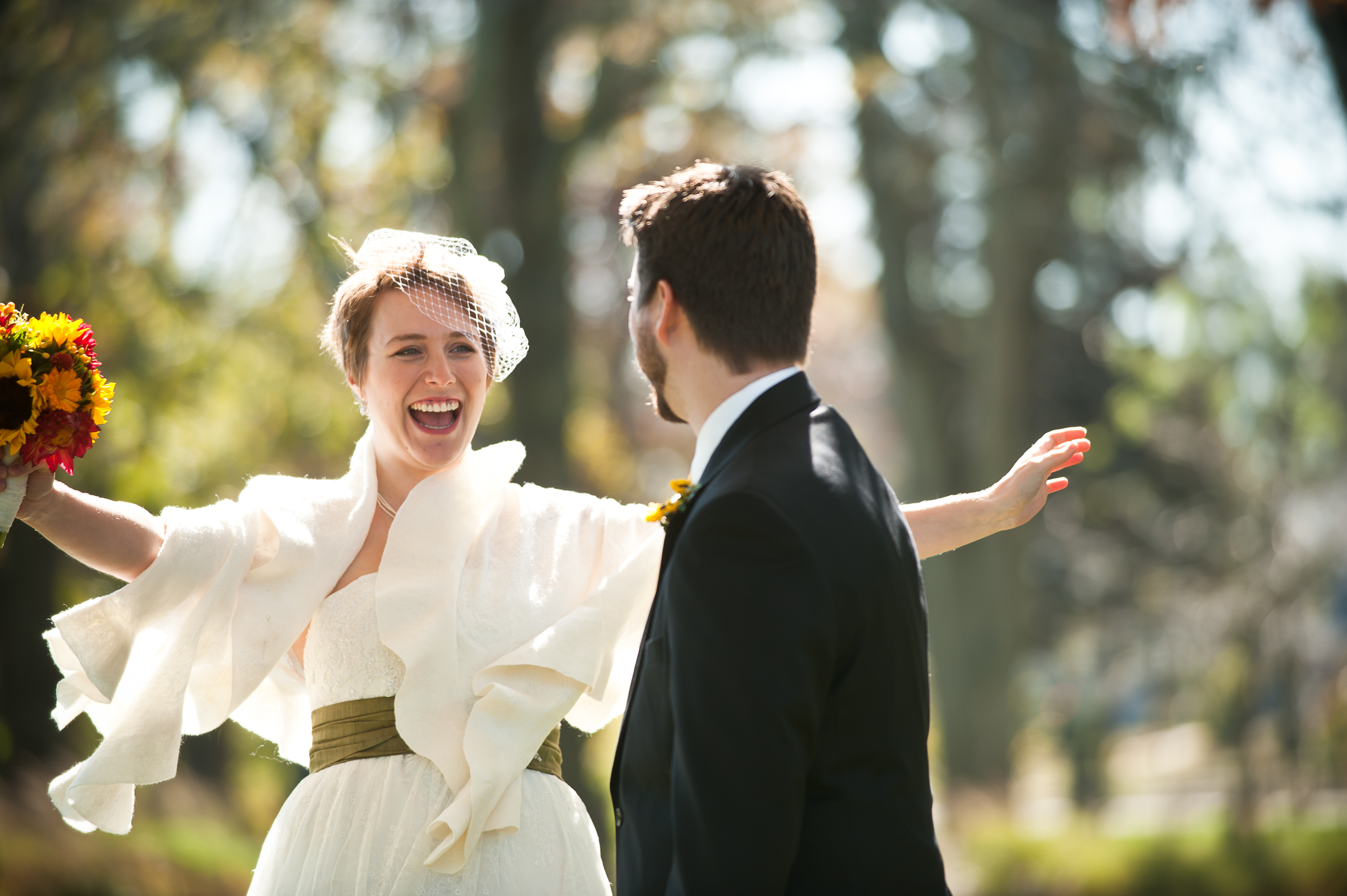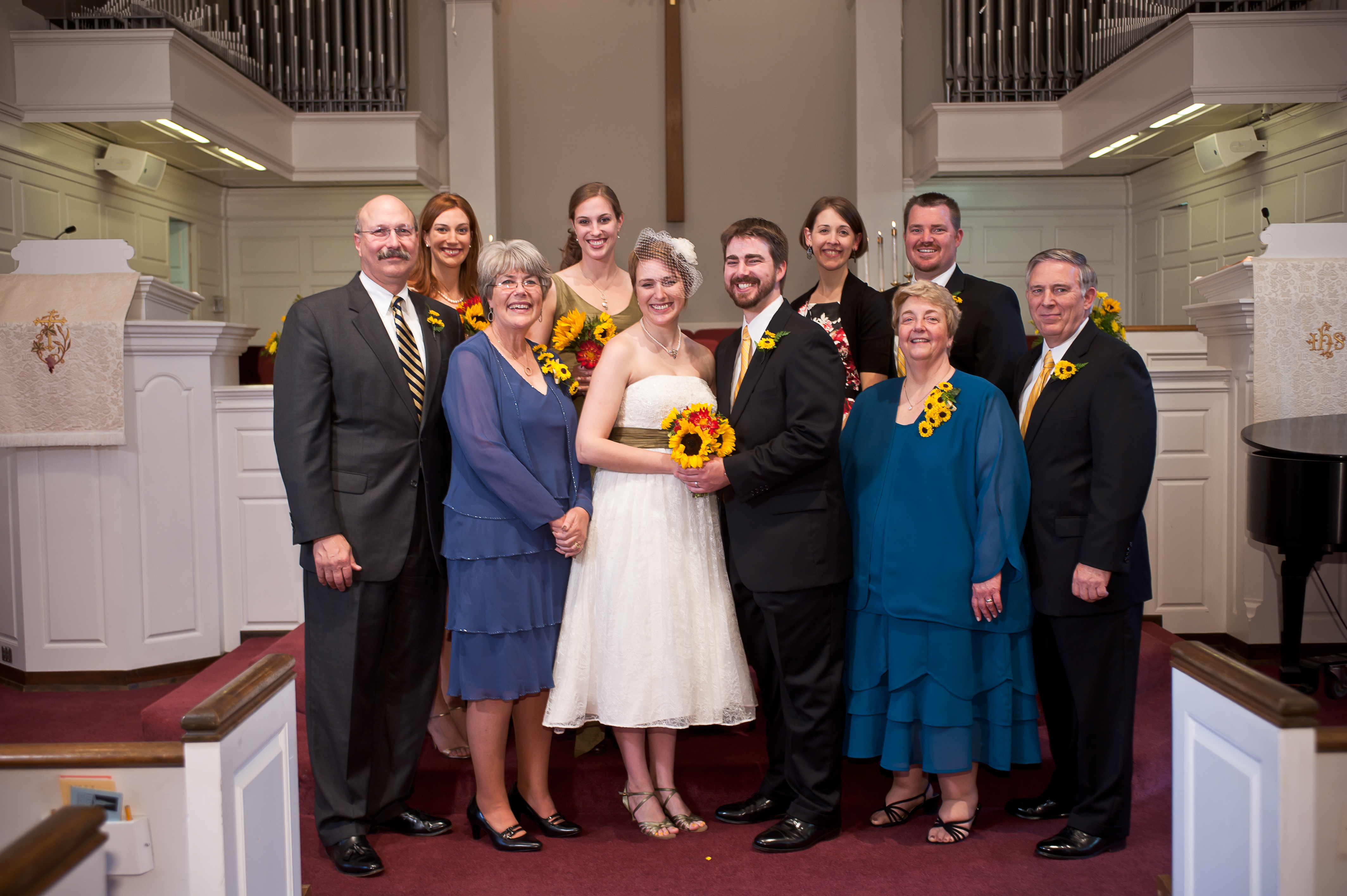 As many modern couples do these days, they had pictures taken before the ceremony and so the first time he saw her in her wedding gown, they were outside instead of in the church. This wedding was on a beautiful fall day. The ceremony was in the afternoon.