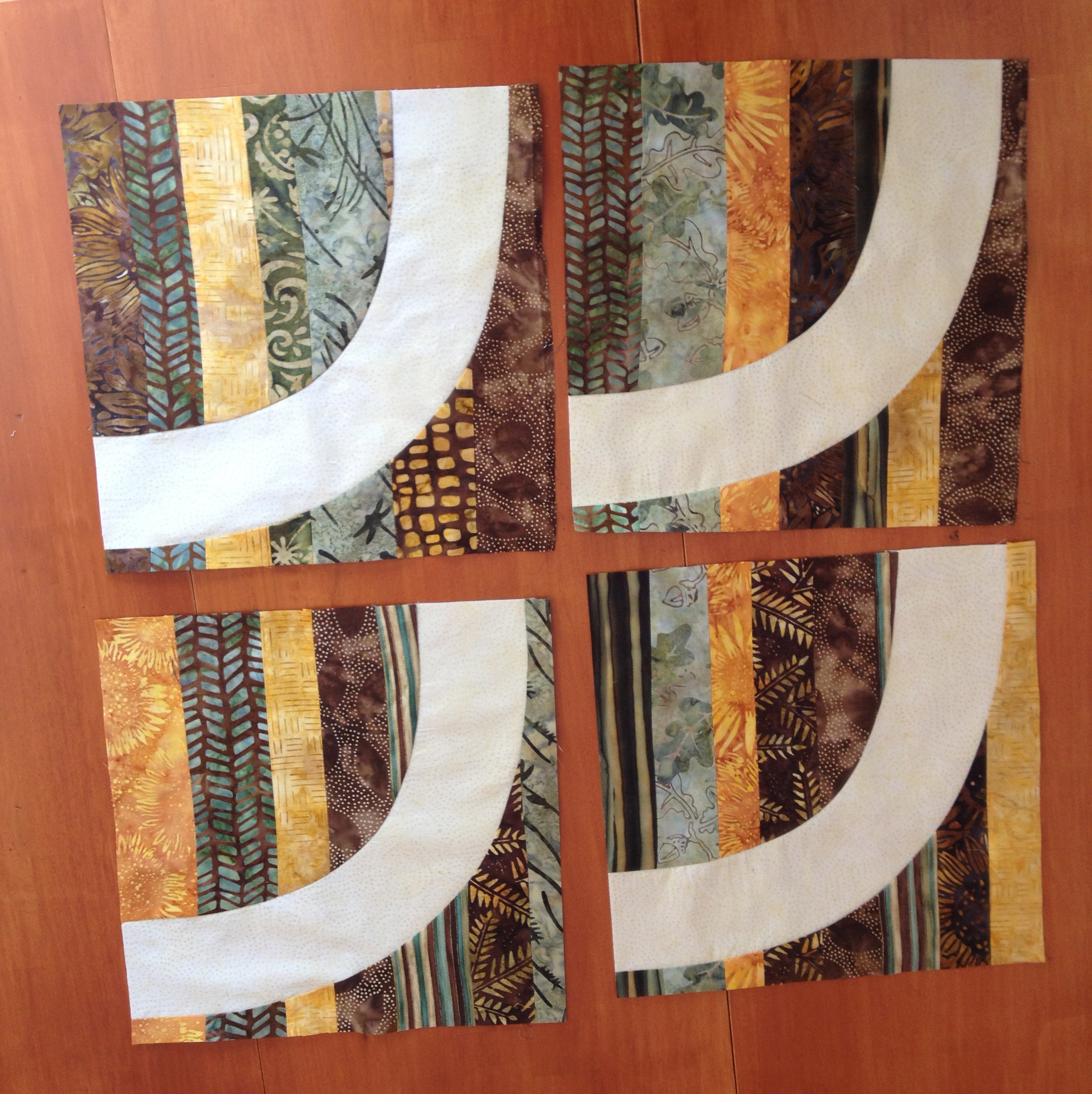 I’m going to make the center two blocks the opposite colors of the outside blocks. I will strip piece the background with the napkin fabrics and do the rings in the cream colored fabric. I love the thought of this. The middle blocks symbolize Lindsey’s and Brian’s wedding rings and they will be surrounded by circles that symbolize their families and their friends. Circles surrounded by circles. Okay, this is really dorky but “the circle of life” also comes to mind. (and with that term – The Lion King!)