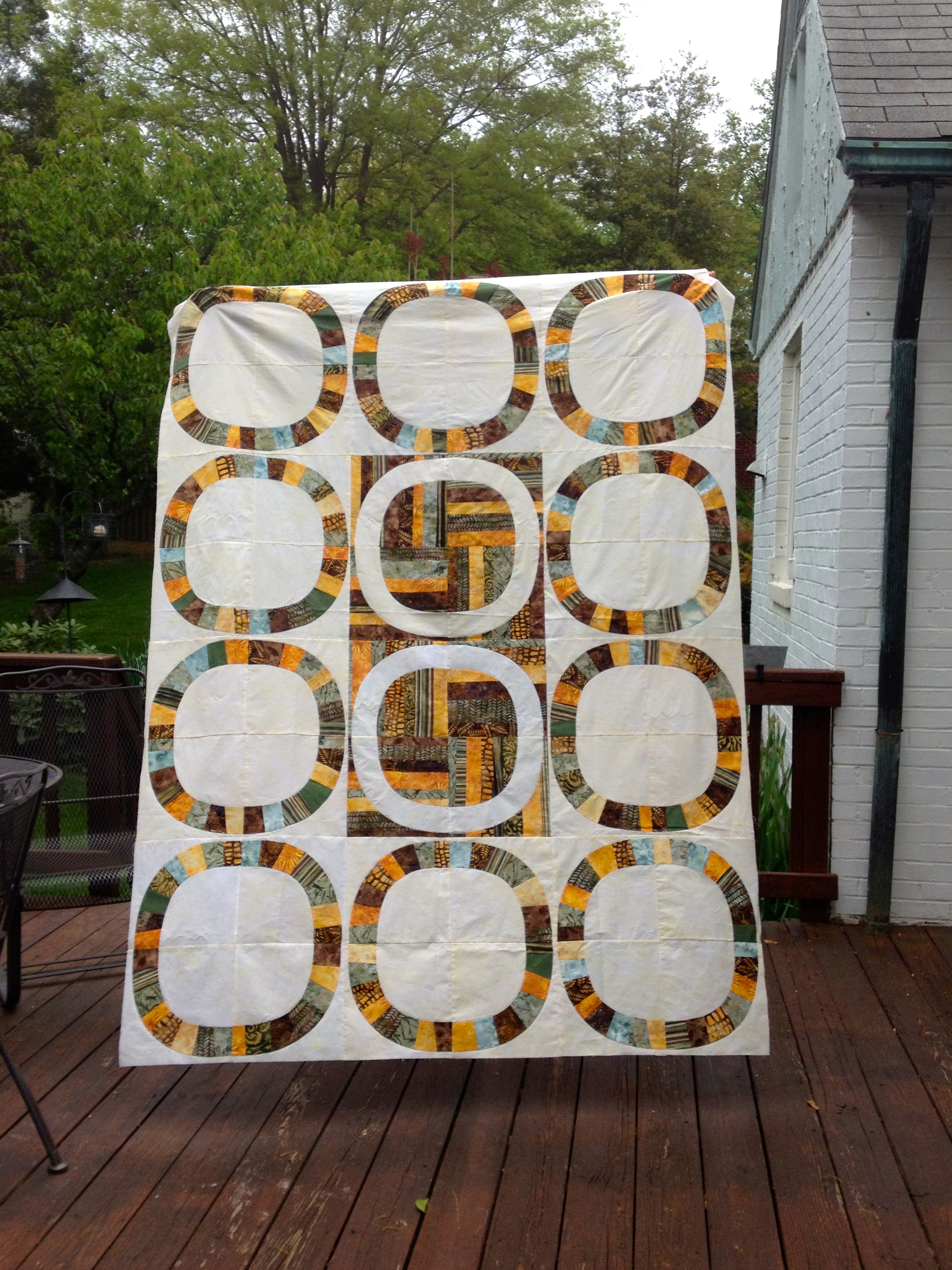 I assume that it is called “Single Girl” because the rings do not interconnect. However, as I look at the Single Girl Quilts that others have made and posted on Flickr or Pinterest, I can see that plenty of people make them up as wedding quilts. The quilting can add that interlocking component.