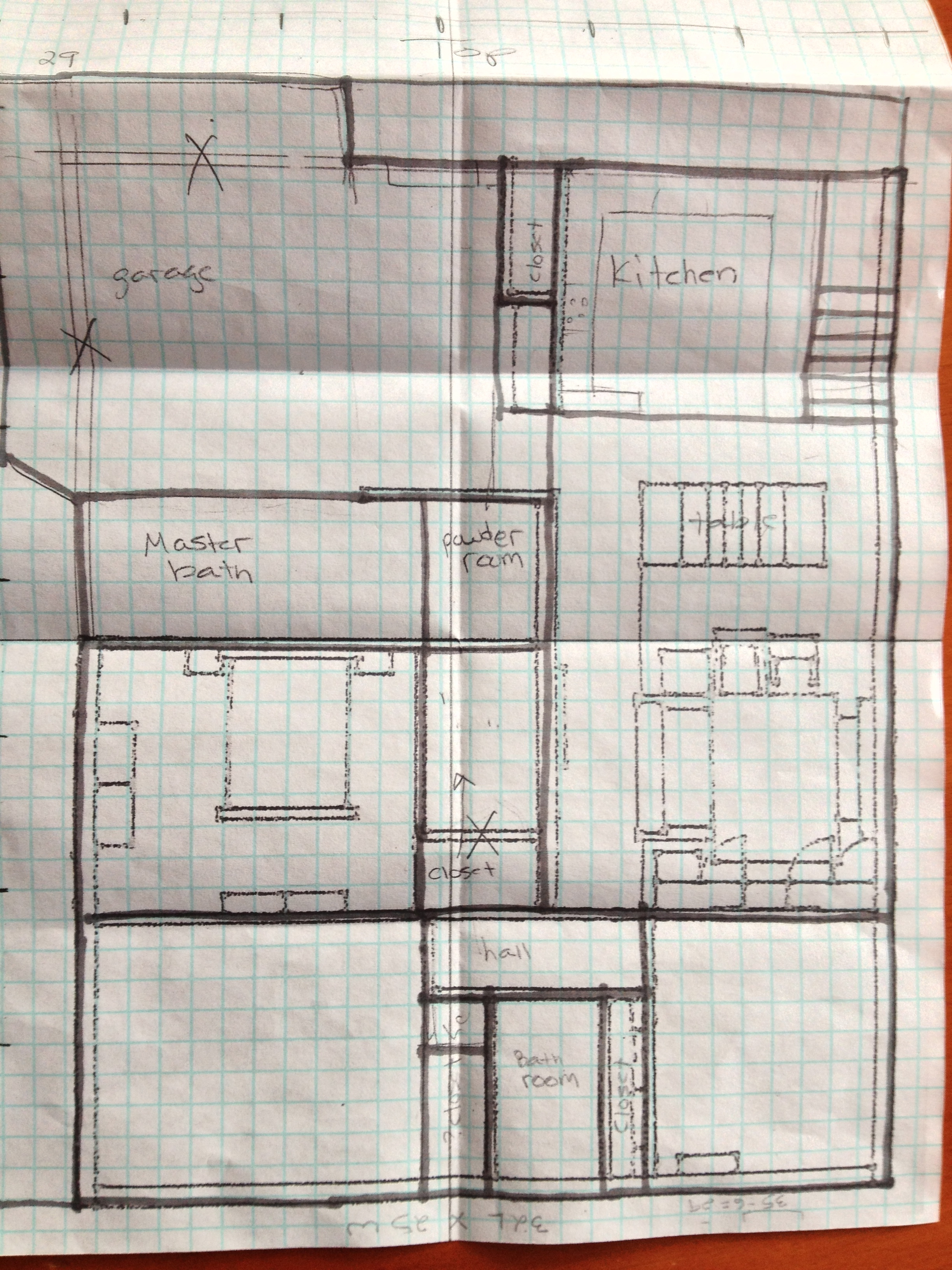 I copied it on to graph paper and filled in some walls that were missing – like the whole garage!