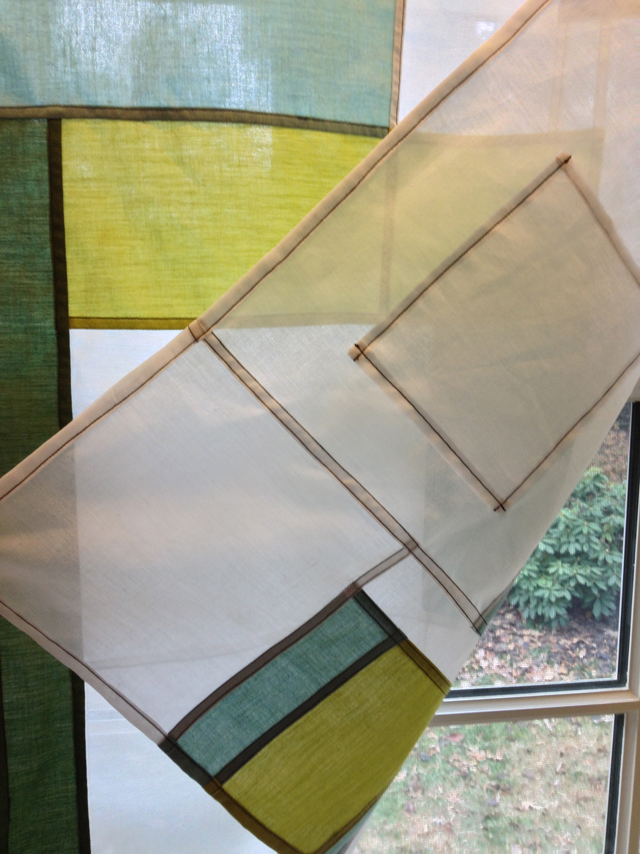 My oldest daughter and her husband bought a house a few months ago. So far, they only have temporary curtains or shades in their windows. Their kitchen window faces the street. It is nice to work at the sink and look out but it seems as though there should be some kind of curtain there for privacy. This is not a huge issue because of the size and position of the window, but it got me thinking about a decorative sheer panel curtain and a technique I’ve recently seen called pojagi. Have you heard of it?