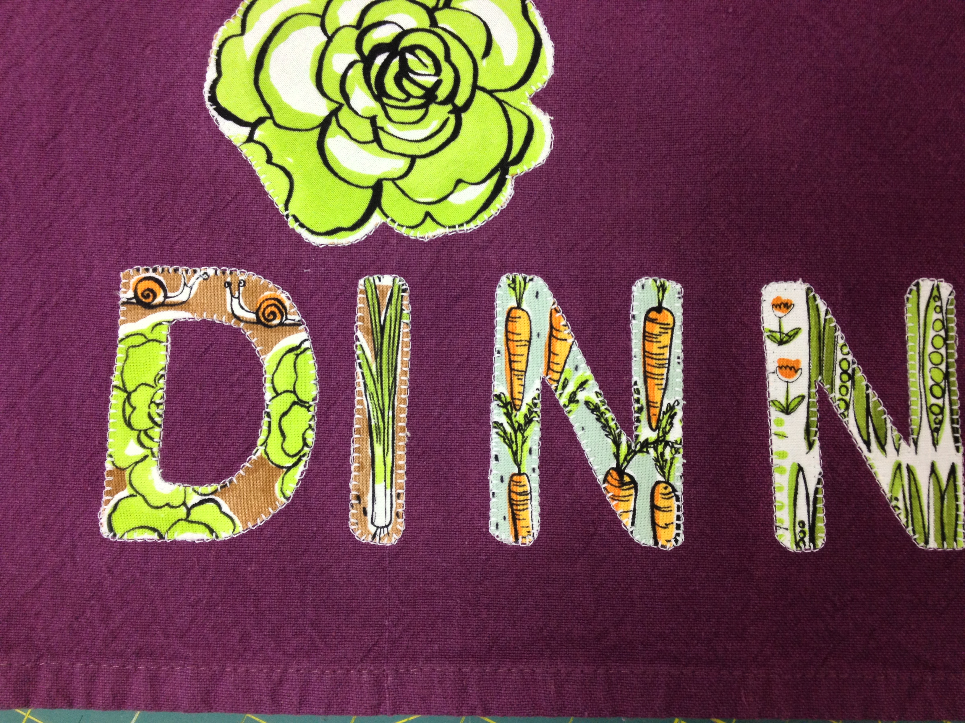 I cut my letters out of the different vegetables and here is the finished towel.