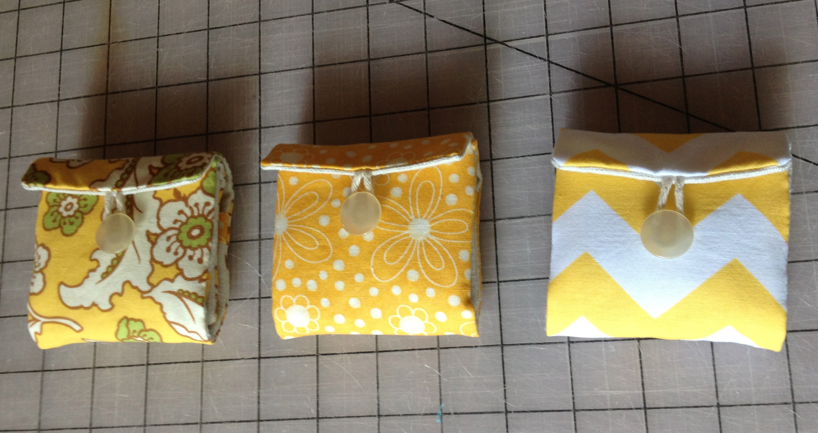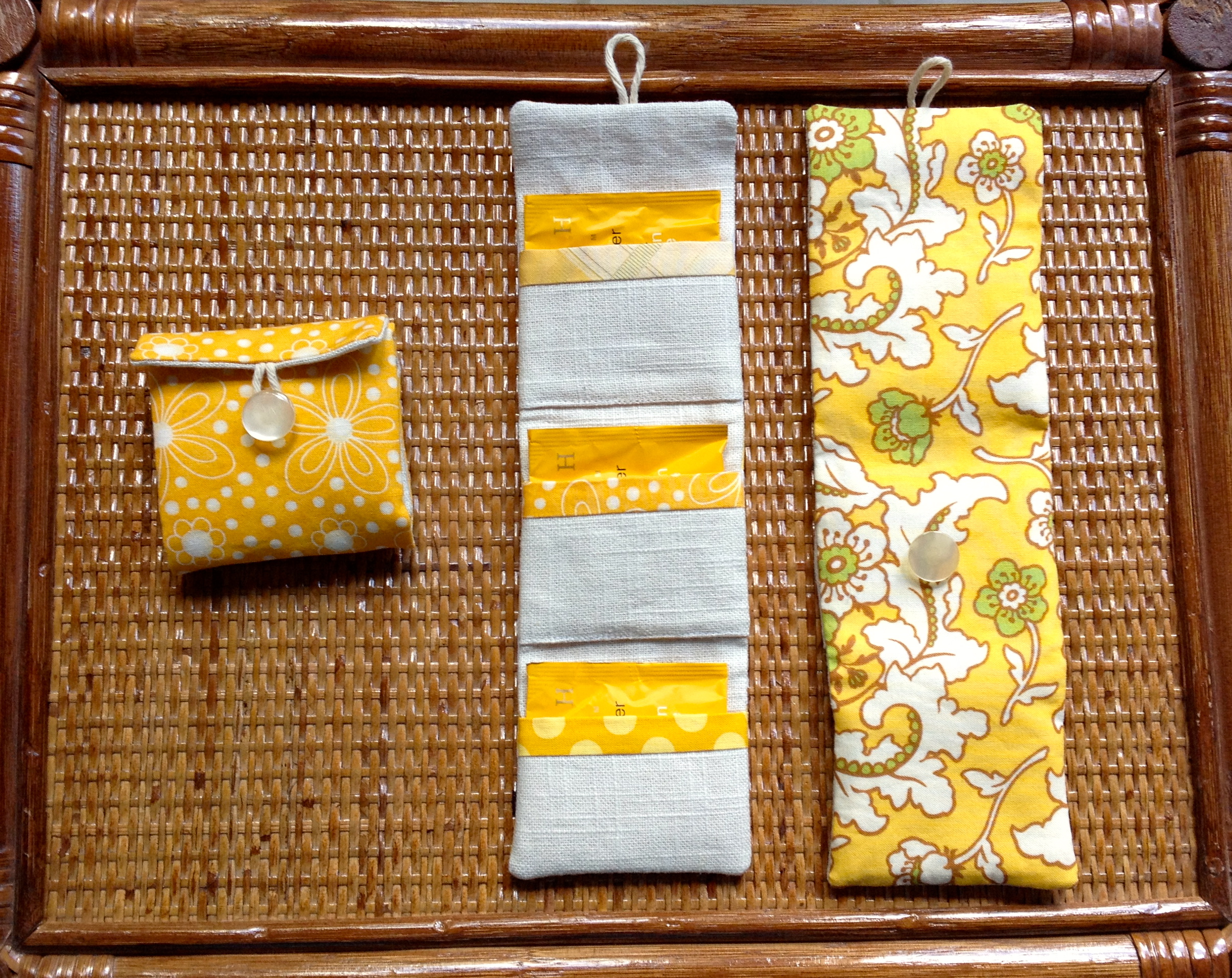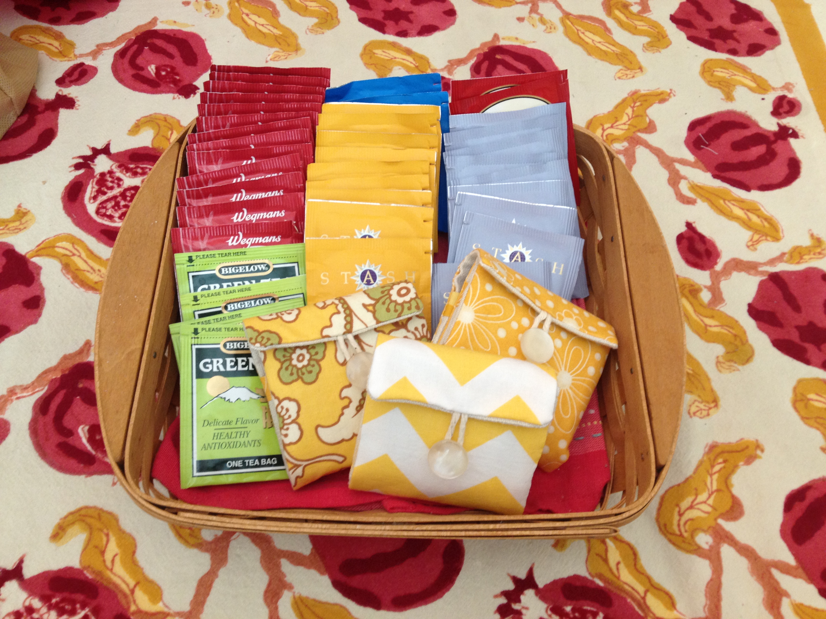 Teabags placed within pockets and pouch folded up. Button sewn in place.