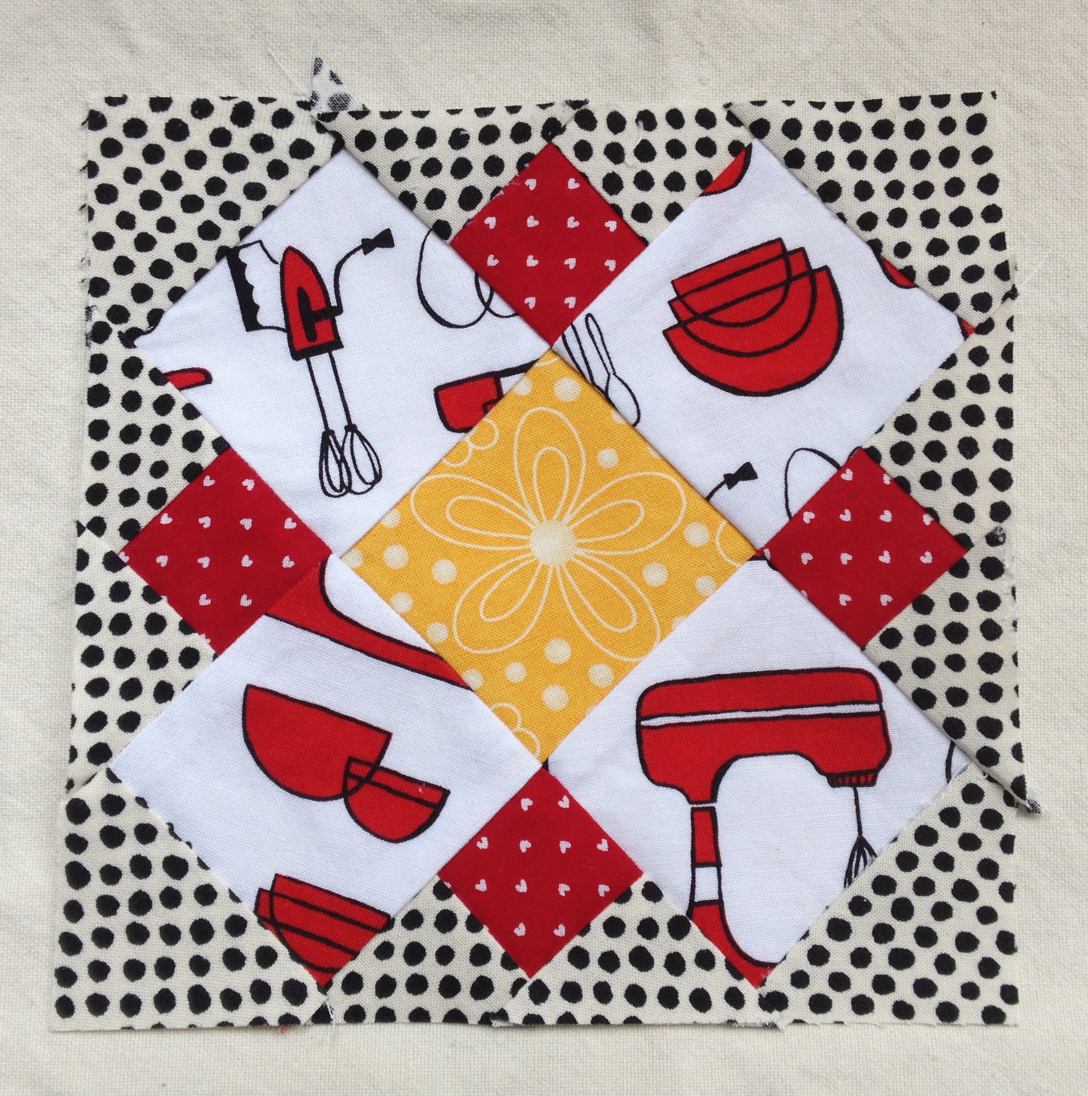 I tried to use as many polka dot-like fabrics as possible.