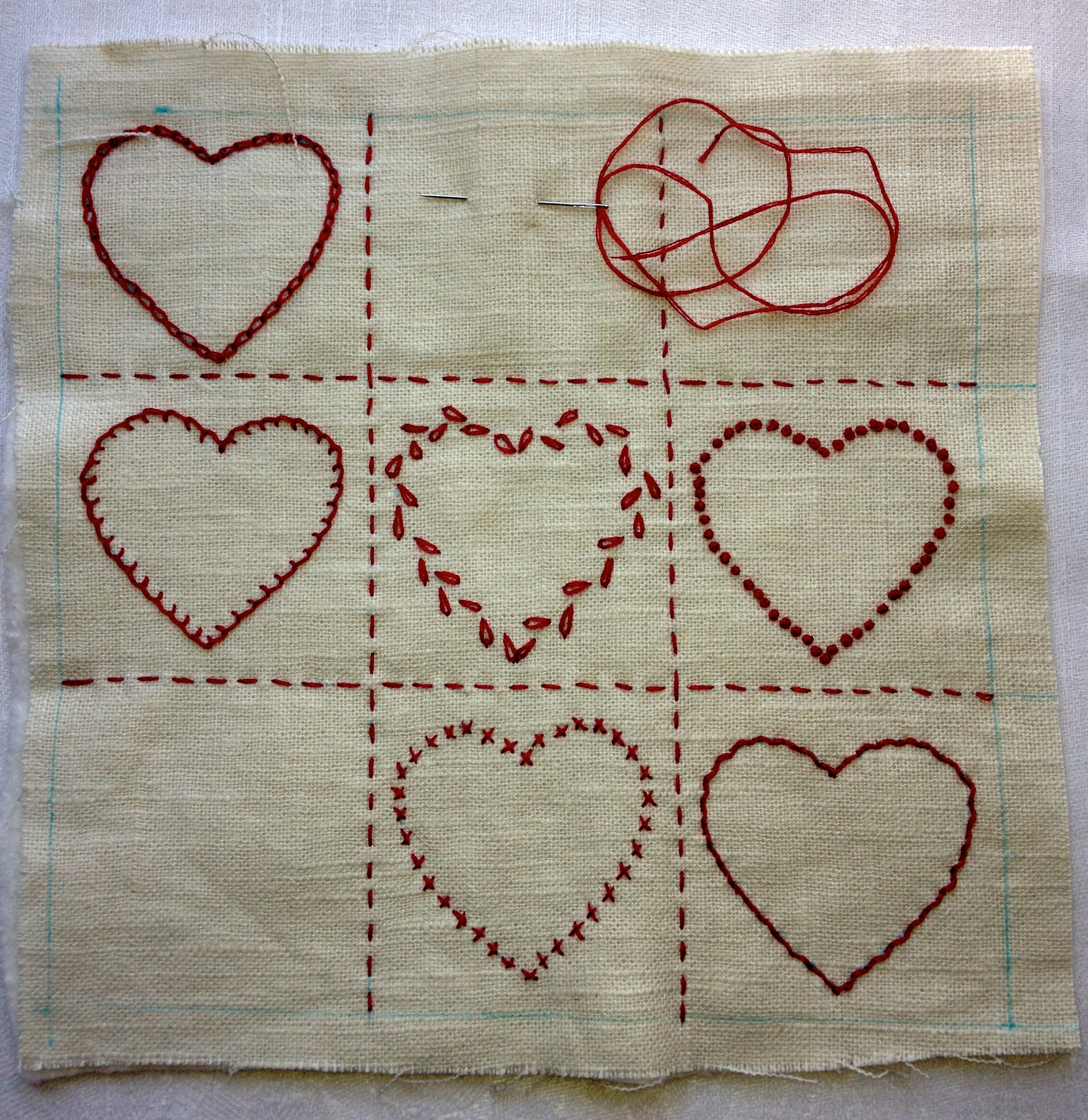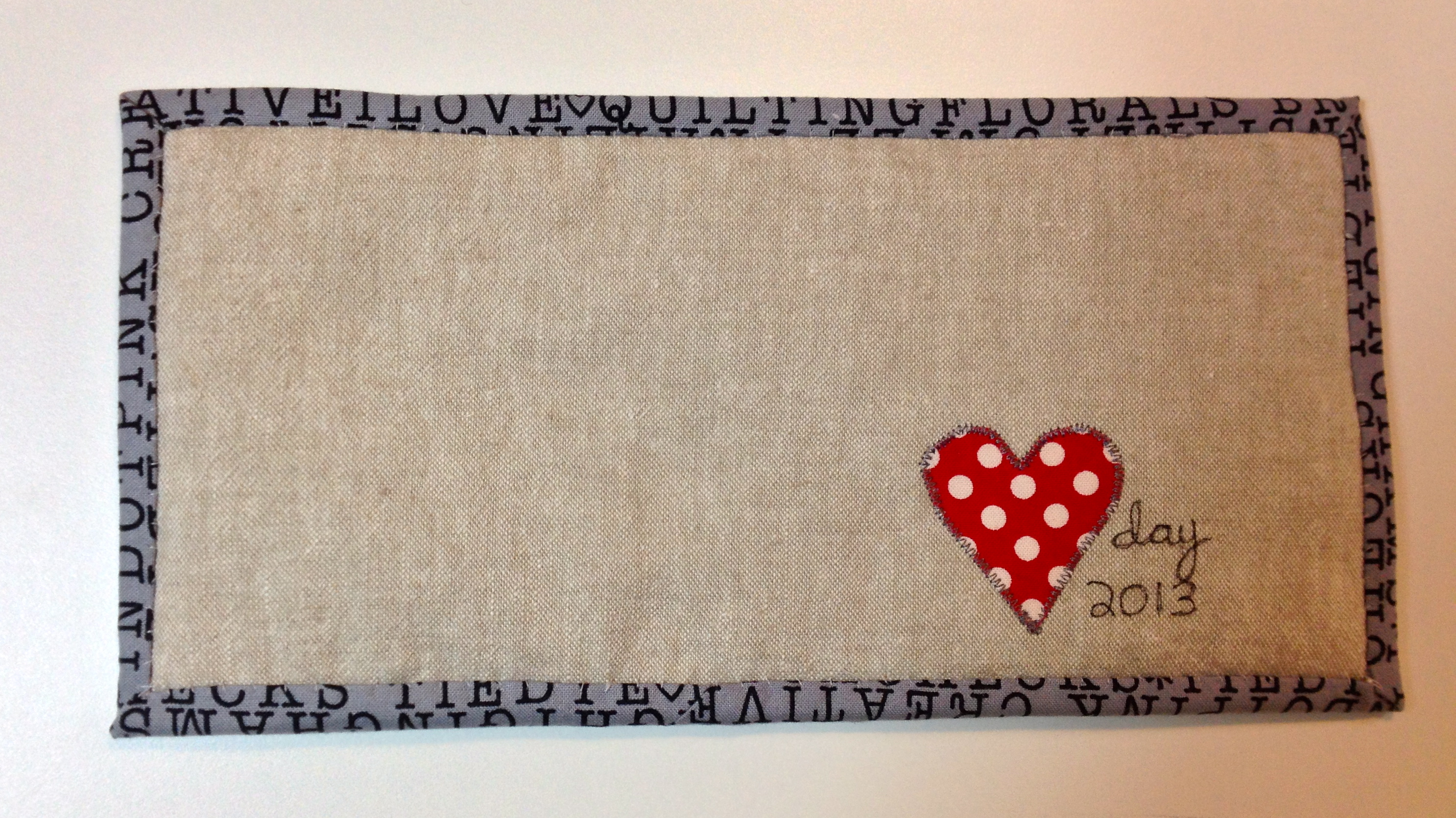 The heart directions are from a mini quilt tutorial by Jera of Quilting in the Rain.